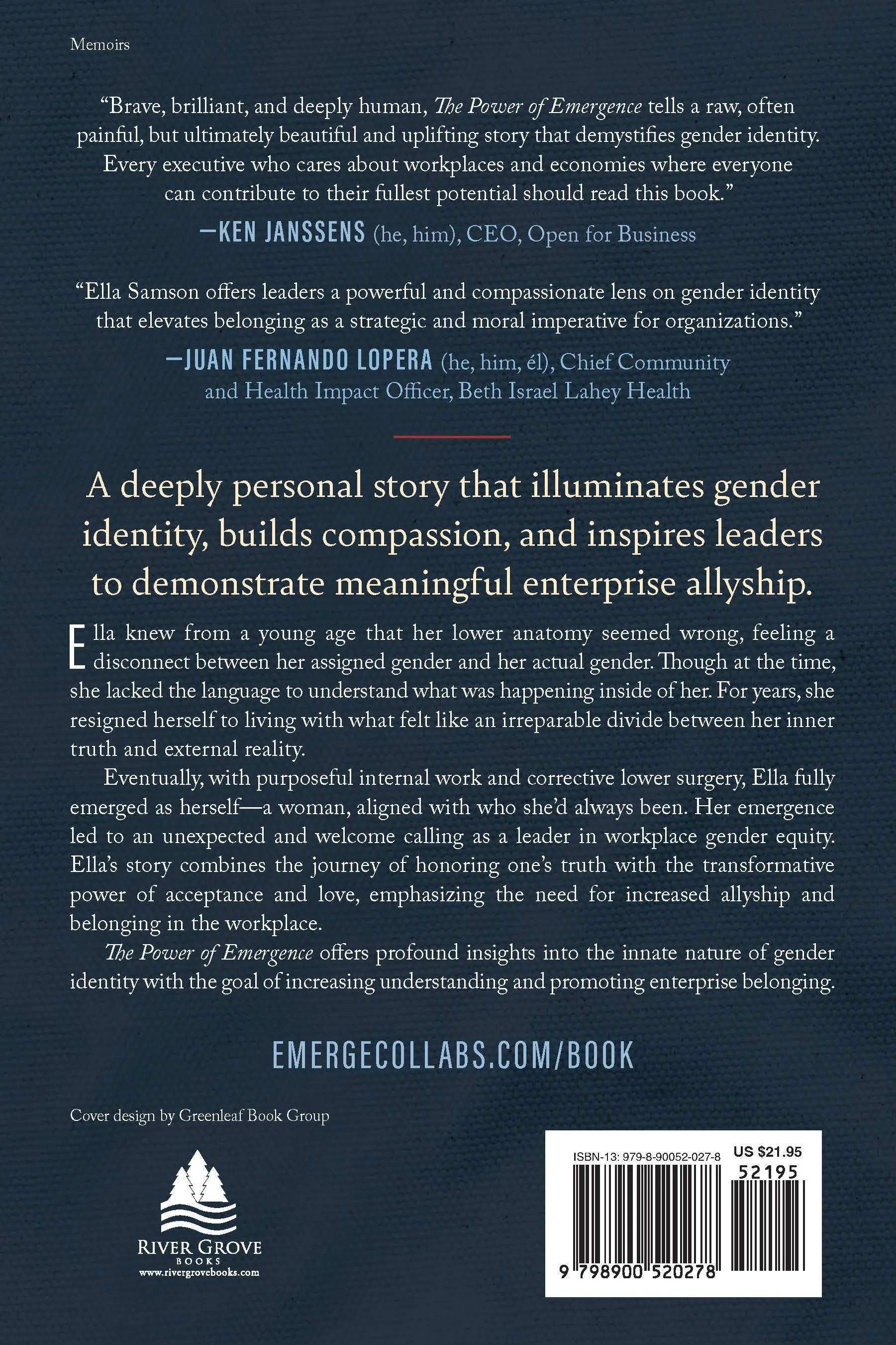 By exploring the complex concept of gender identity through the lens of her own experiences, Ella highlights the importance of creating supportive and inclusive spaces. Through honest and vulnerable storytelling, The Power of Emergence offers profound insights into the innate nature of gender identity with the goal of increasing understanding, promoting enterprise allyship, and improving belonging for the gender-diverse and transgender workforce.
